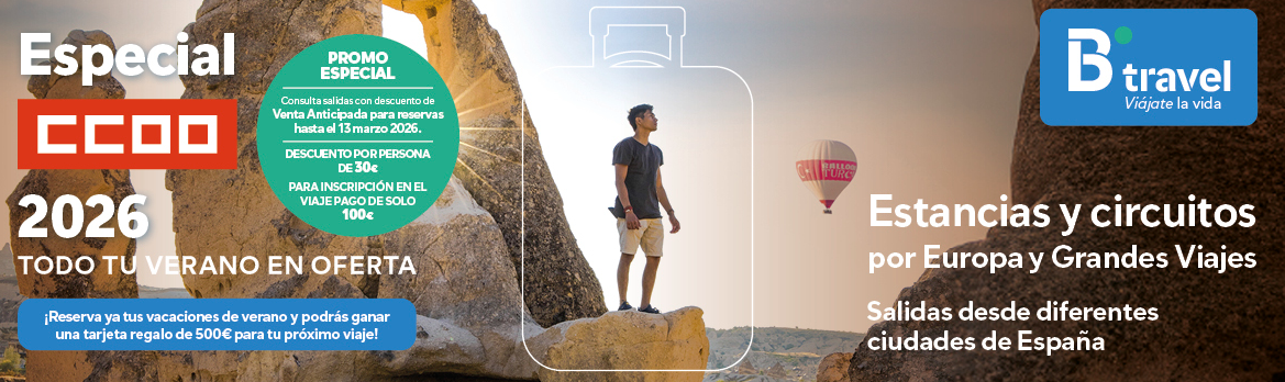 Para todas las reservas efectuadas hasta el 13 de marzo de 2026 de este folleto, en las 3 oficinas indicadas para la venta especial CCOO, se aplicarán las siguientes promociones: