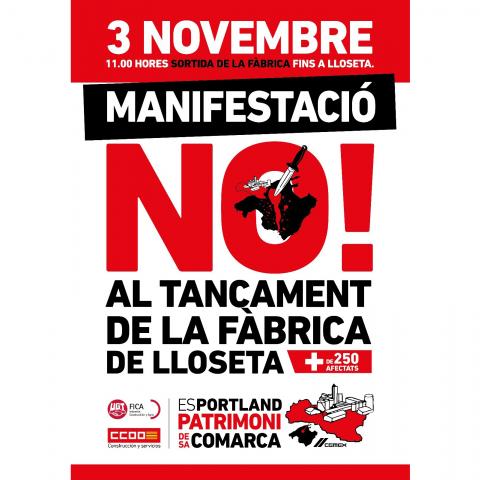 Por este motivo os invitamos a sumaros a la manifestación que tendrá lugar el próximo 3 de noviembre, a partir de las 11 horas. El recorrido será desde la salida de la fábrica hasta Lloseta.