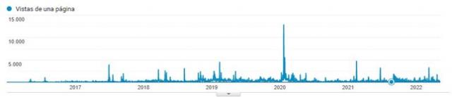 Gráfica que muestra las visitas diarias a la web de CCOO Endesa desde que nació en abril de 2016 hasta mayo de 2022.