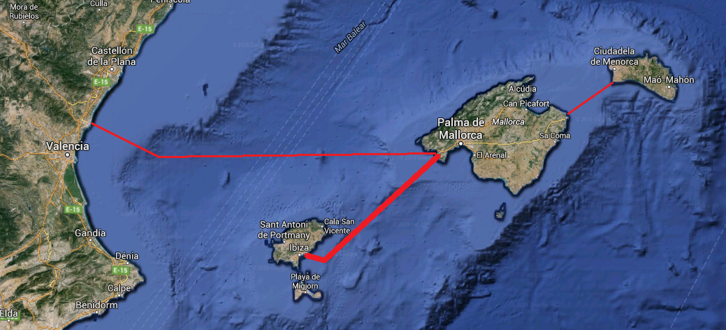 Completado el tendido de las dos lineas de interconexion entre Mallorca e Ibiza, se realiza la puesta en marcha de la misma.
