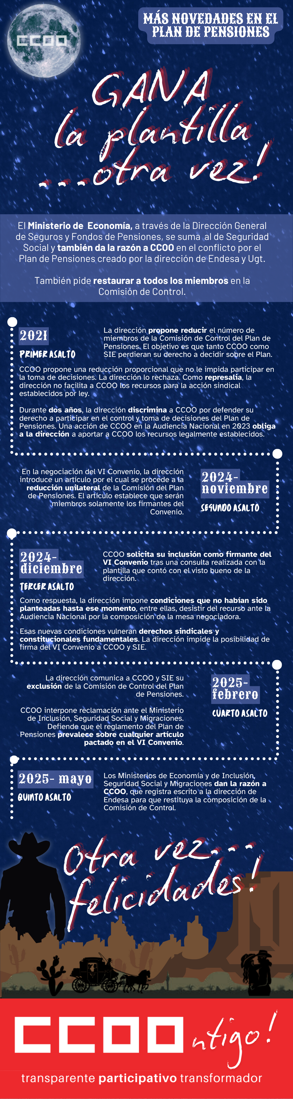 El Ministerio de Economía del Gobierno de España, a través de la Dirección General de Seguros y Fondos de Pensiones, se suma al de Migraciones, Seguridad Social e Inclusión y también le da la razón a CCOO en el conflicto creado por la dirección y Ugt para controlar los 2.400 millones de euros del Plan de Pensiones. El escrito del Ministerio de Economía llegó este pasado lunes. El del Ministerio de Migraciones, Seguridad Social e Inclusión lo hizo la semana pasada.