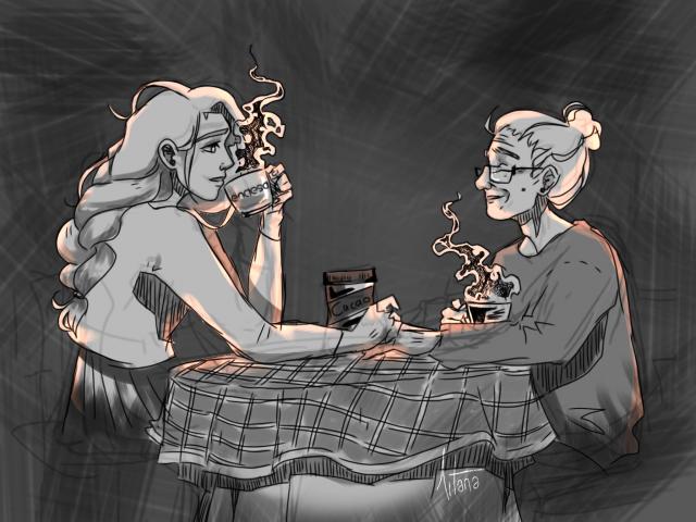 Ya una vez dispuestas en la mesa camilla, hablamos de lo de siempre, ella me cuenta sus avatares de vecindad mientras yo rodeo la taza de cacao con mis dos manos, en un trasvase agradable de calor pues debo haber heredado sus manos frías. La taza es la misma de siempre, pues mi abuela parece tenerla predestinada en uso exclusivo para mí. Es la taza que mi abuelo usaba, con el anagrama de la empresa ya desgastado.