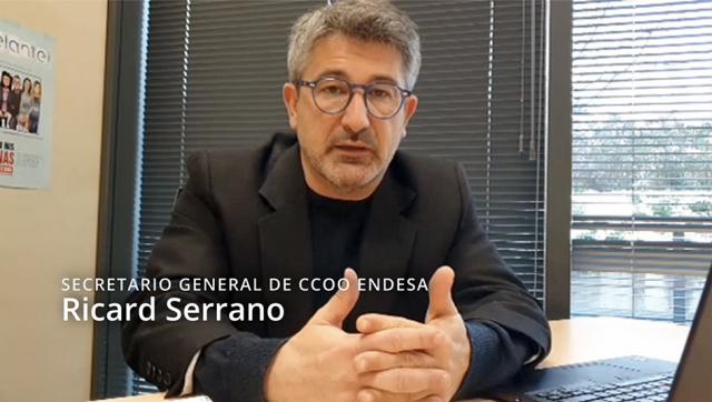 El secretario general de CCOO Endesa, Ricard Serrano, comunica hoy a la plantila las prioridades de la sección sindical para estos primeros meses de 2021. Lo hace a través de un vídeo de dos minutos de duración grabado en la sede de Endesa en Madrid. Pica aquí para acceder a él. El secretario general de CCOO Endesa es graduado en Ciencias Políticas y de la Administración por la Uned, universidad donde también ha cursado un máster en Responsabilidad Social Corporativa. Ingresó en Endesa en 2002, desarrollando su actividad profesional como Gestor de Empresas en Endesa Energía. Ricard Serrano accedió a la máxima responsabilidad de CCOO Endesa en octubre pasado tras la prejubilación de quien hasta entonces ostentaba esa responsabilidad, Alfredo Villodas.